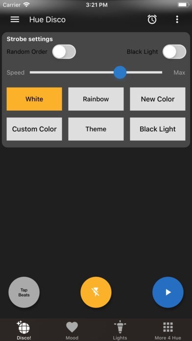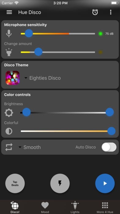 「Philips hue」のコントローラーである「Hue Disco」には、スマートフォンならではの機能が満載です。マイク認識による照明変更、端末のシェイクによる操作などを活用できる、ワンランクアップしたコントローラーとして利用できます。
