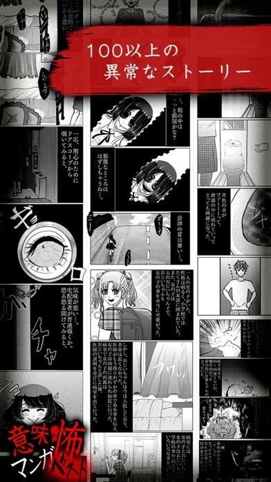 当アプリの漫画はホラーものですが、映像で驚かせる話は一切ありません。心理描写で驚かされるので、じわじわと恐怖を体感したい方にはおすすめです。一人のときに利用して頂きたいです。