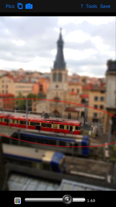 Focus on a linear or elliptical region in the image with visual guides and interactively adjust the amount of blur for maximum effect. Increase color saturation, contrast or brightness to increase the toy model look.