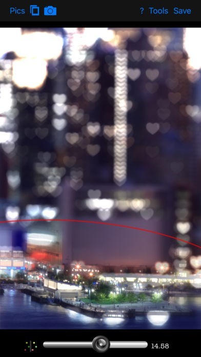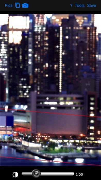 App Storeより引用Transform a scene into a miniature world. This application simulates a tilt-shift lens that tricks your mind into viewing a photo as a miniature scene like a model railroad for example.