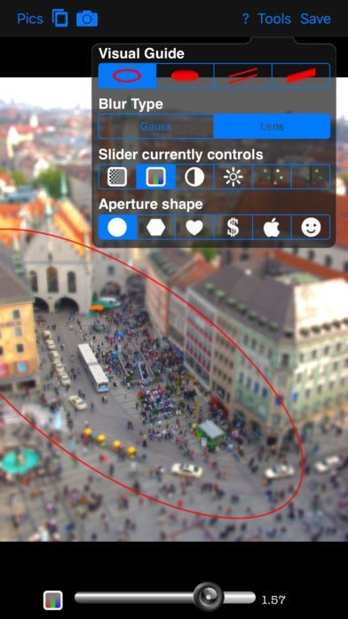 You can even choose a shaped aperture (hexagon, heart, dollar sign, etc.) if you like.
