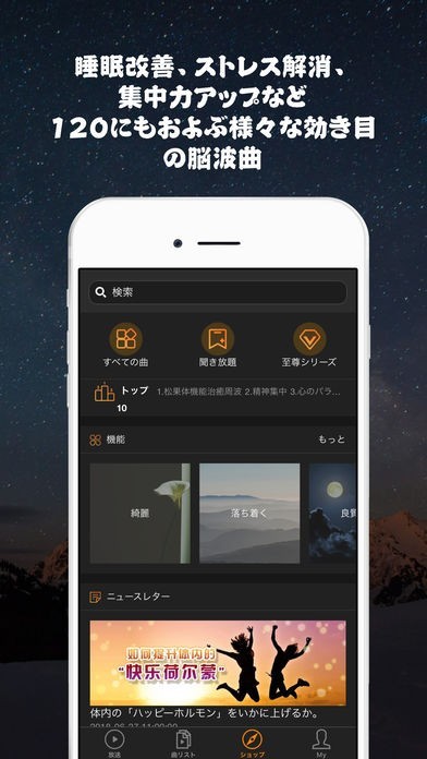 現在に社会人の方々はストレスの悩み抱えてる方が多く、半健康状態になりやすいです。brainwaves「脳波」という癒しアプリを試してみてはいかがでしょうか。脳波を聴くことによって、大脳のポテンシャルを呼び覚まし、心身をリラックスさせ、快眠促進、ストレス解消はこんなに簡単!