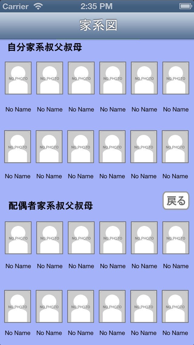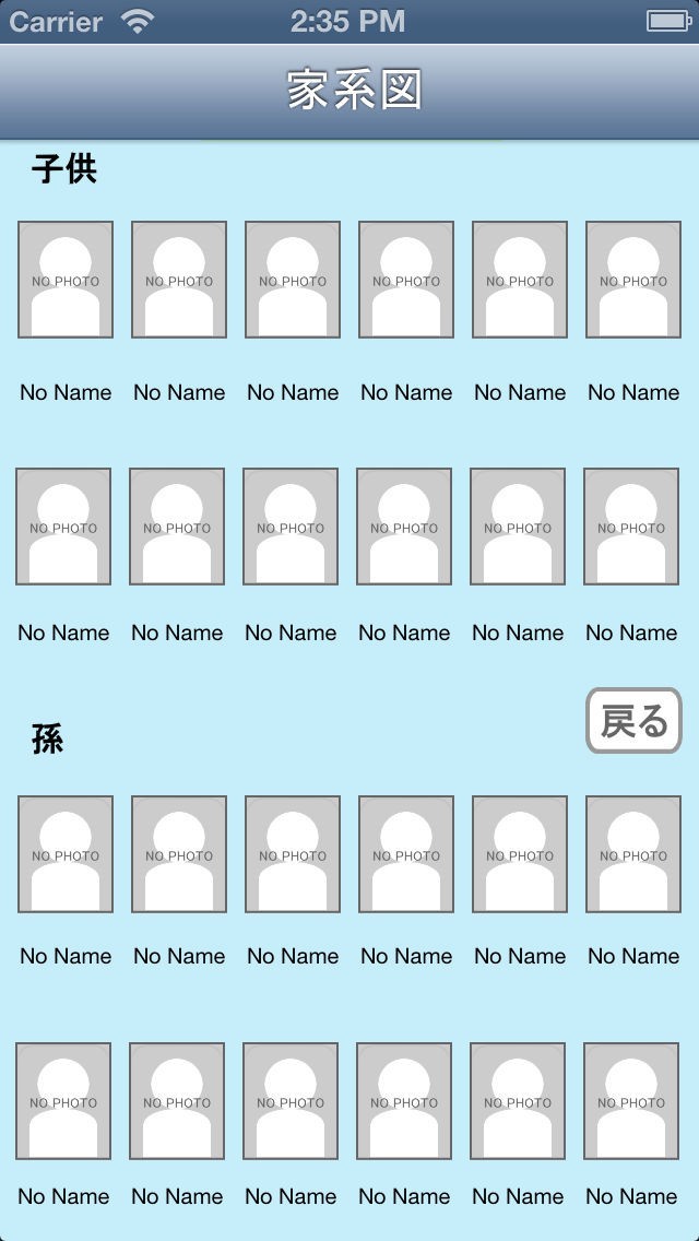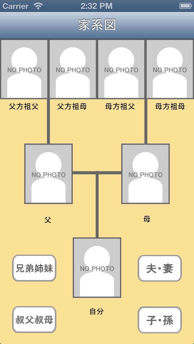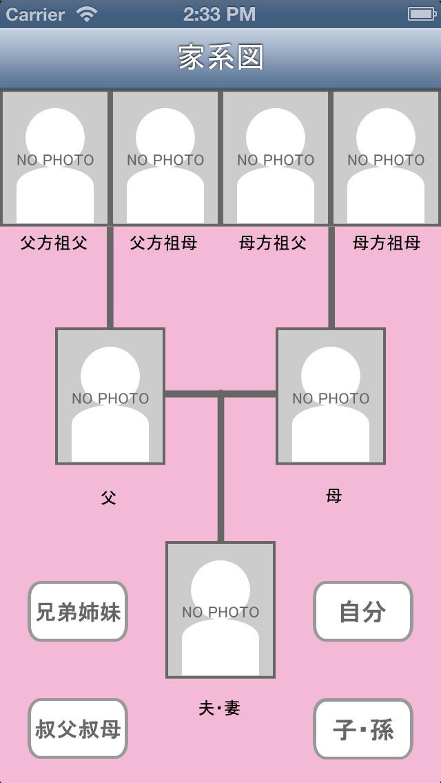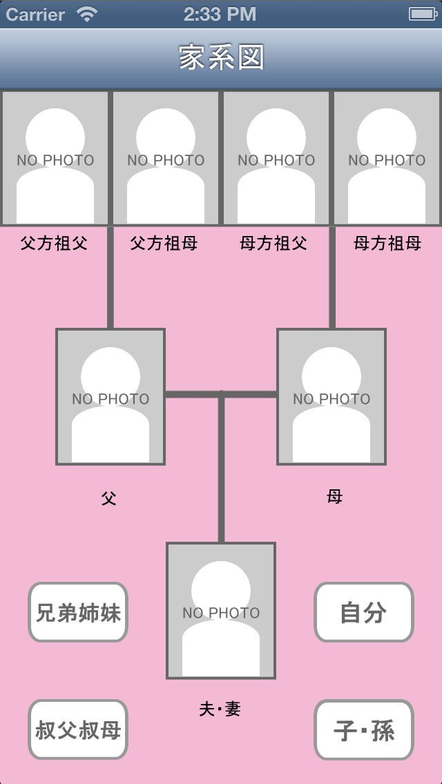 全部で5画面の表示が可能!色んな視点から家系図が作れる