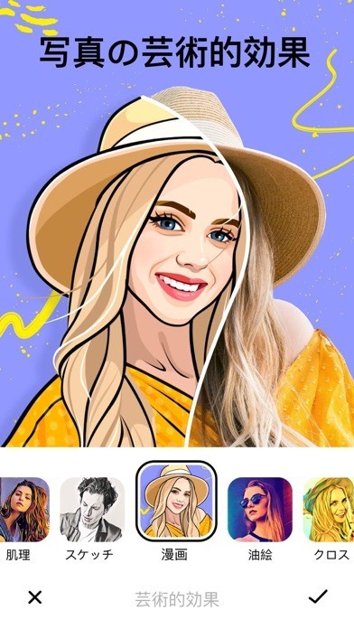 お気に入りのスタイルを選択して使用します:漫画、鉛筆スケッチ、水彩画、油絵など。 ワンクリックでアート写真を作成します。