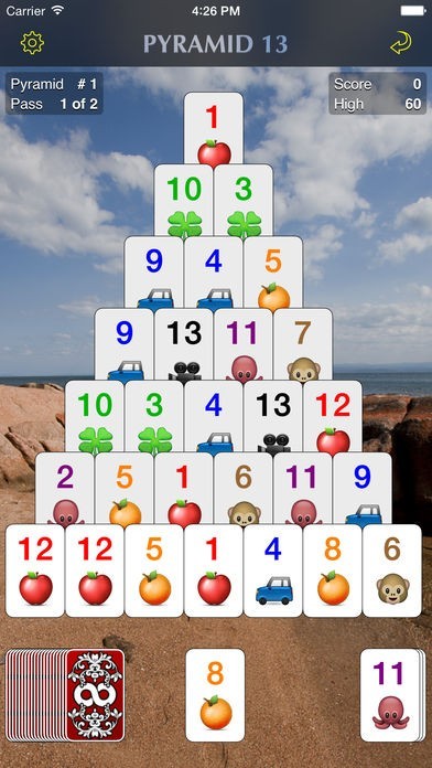 Match pairs of cards adding up to 13 and see how many points you can accumulate. Keep increasing your score until you are unable to clear all of the cards in the pyramid.