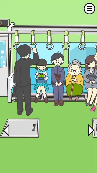 時には迷惑な乗客を懲らしめて電車内のマナーと秩序を守るのだ!とんでもない電車内の状況やおかしな人たち迷惑な人たちが登場する脱出、謎解き系ゲームアプリです。