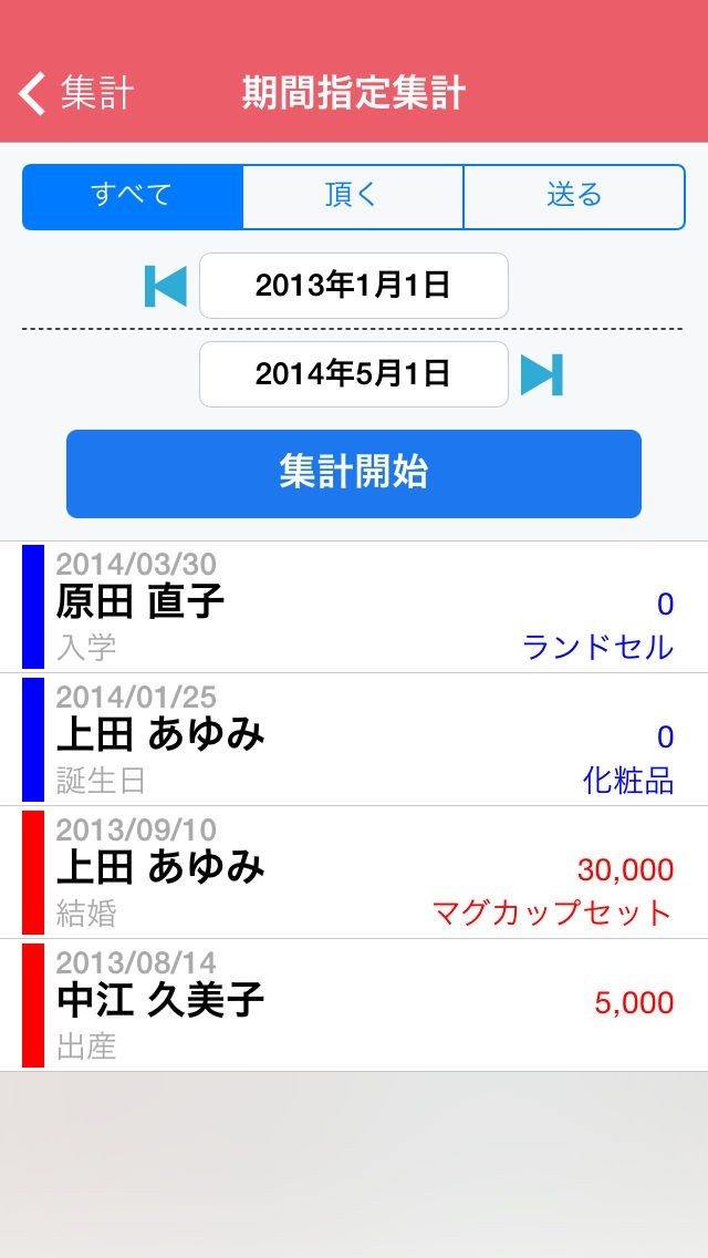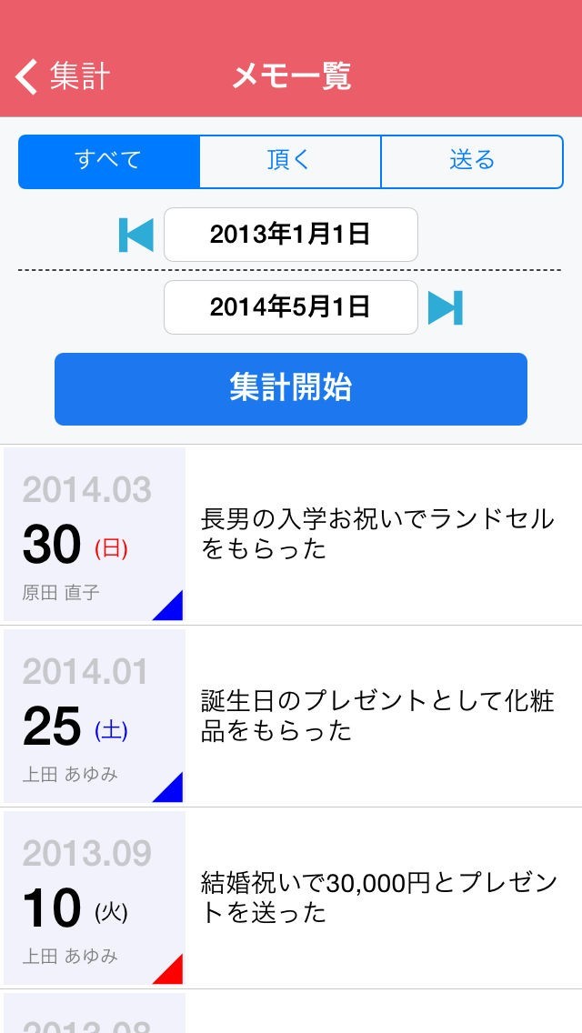 「お付き合い簿」を使えば、だれからどんなプレゼントをもらったのかを記録することができます。お返しを渡しそびれてしまうことがなくなるため大人なお付き合いができるでしょう。
