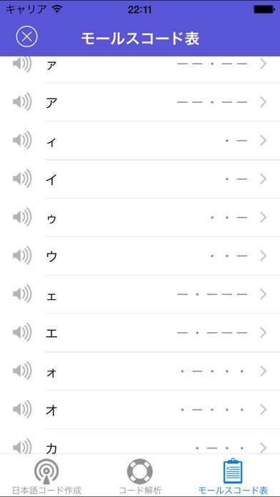 アルファベットとひらがな・カタカナのモールスコード表を搭載