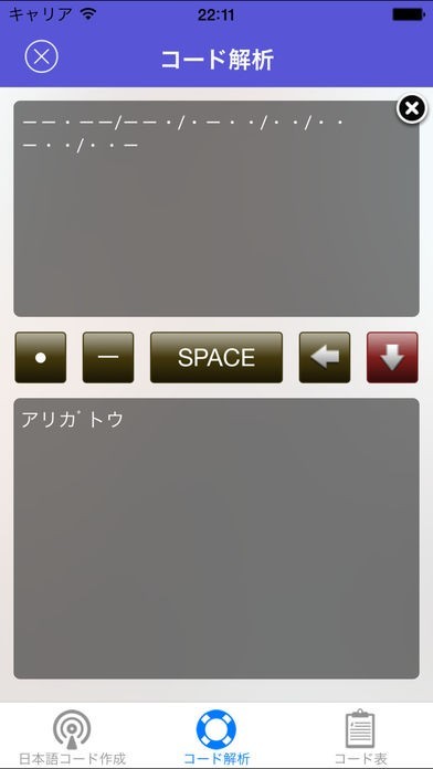 英語・日本語をモールスコードに、モールスコードをアルファベット・カタカナに変換することができるので、モールスコードの作成だけでなくモールスコードの解析にも利用できます。