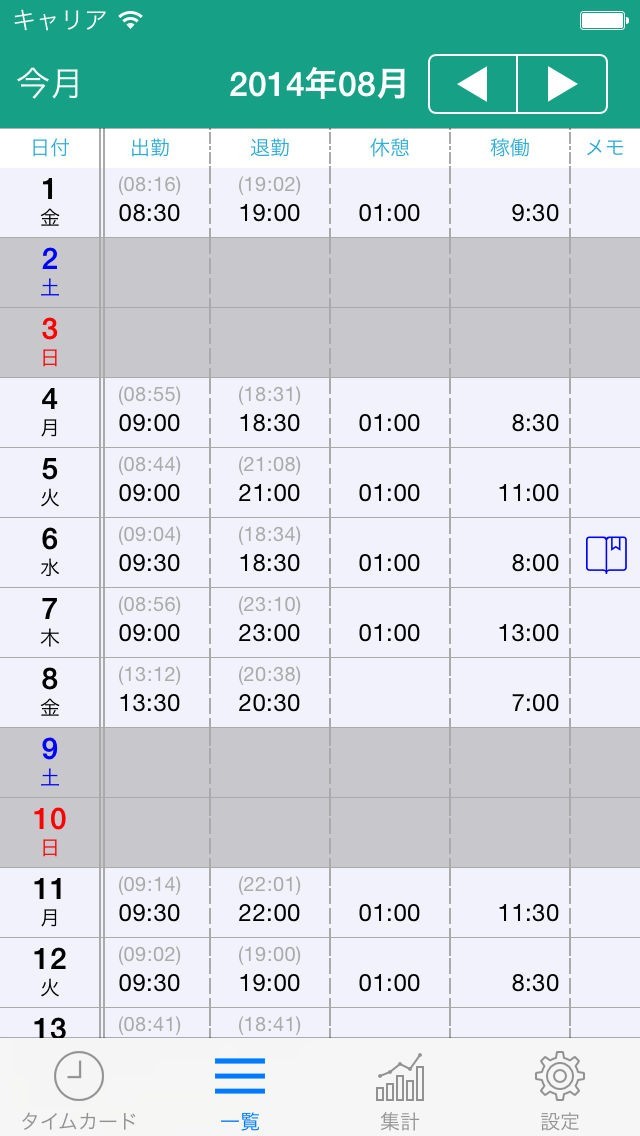タイムカード - 出勤、退勤、給与管理も簡単に!のスクリーンショット