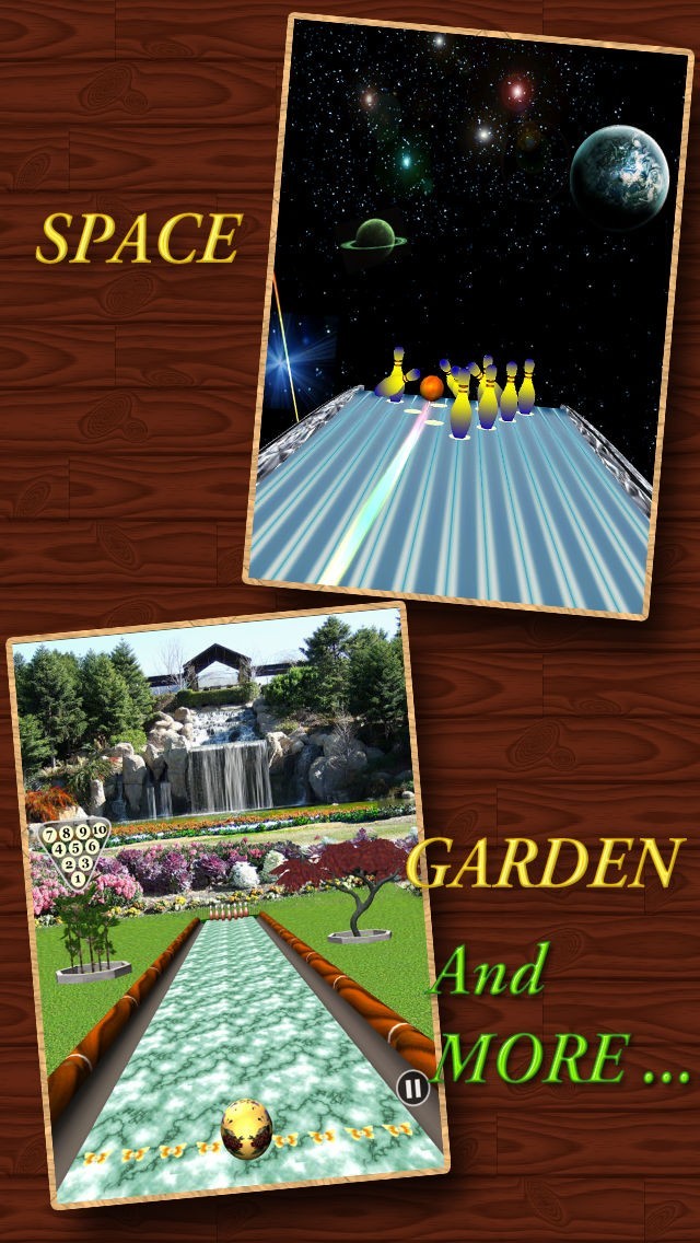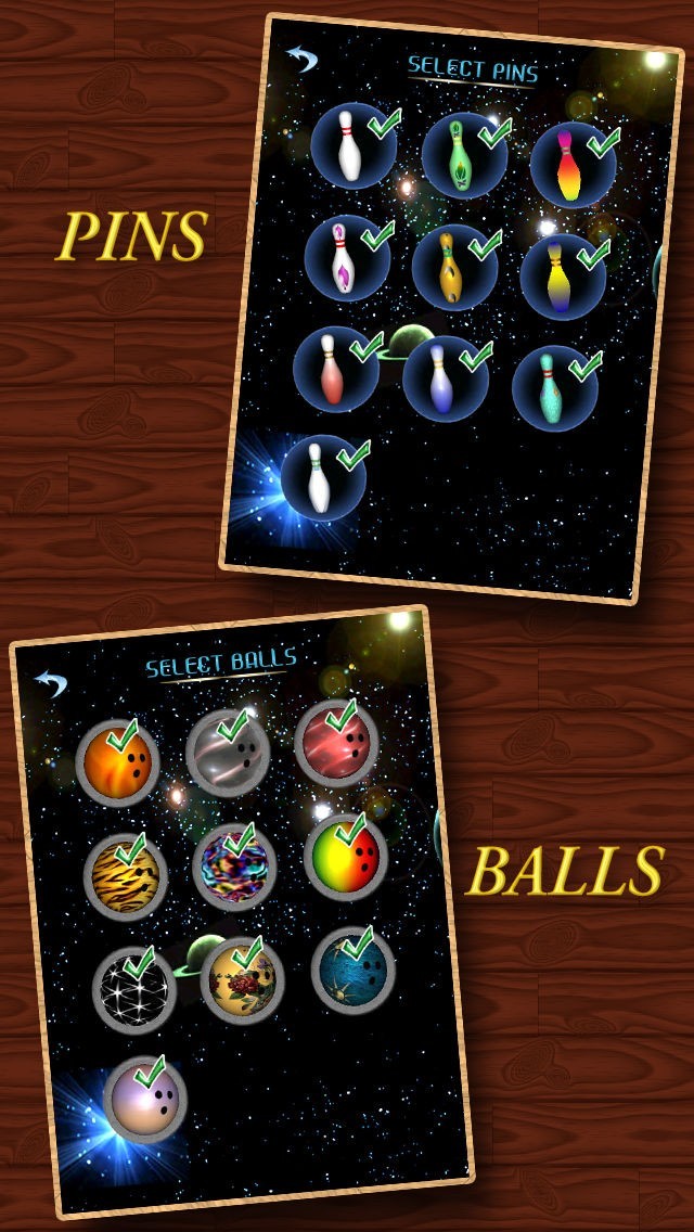 8種類のデザインから選んで、10フレームを投げ込むことが出来ます。基本的なシンプルな背景や、宇宙などの神秘的な風景を見ながら、美しいカーブを描いて投球出来ます。
