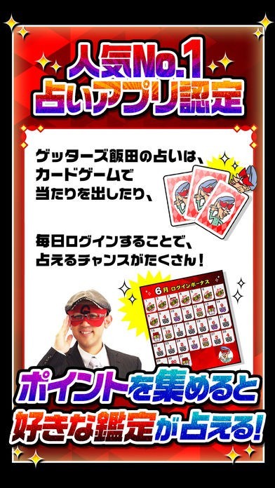 「ゲッターズ飯田の占い」は、累計200万ダウンロード数を誇り、生年月日と名前を入力するだけで簡単に占いができるアプリになっています。面倒な会員登録などは必要ありません。運勢だけでなく相性占いもできます。ポイント制度があり、一日一回あるチャンスコーナーでポイントを稼ぐか課金することで、より豊富な種類の占いを行うことができます。人生の転機や結婚占いなどもでき、ズバッと言い当ててくれますので占いに興味がある方には役立つでしょう。