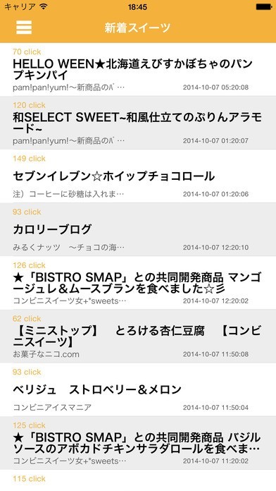 各サイトから配信されたスイーツに関する記事を、時系列順に表示します。