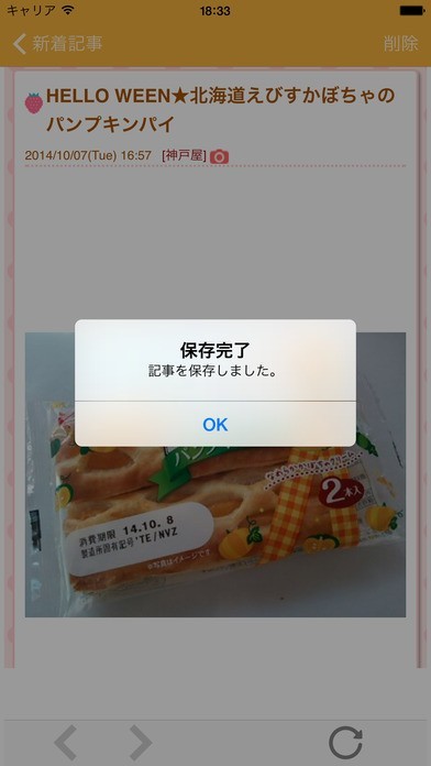 保存しておいたスイーツ情報をあとで見返すことができます。 削除も可能です。