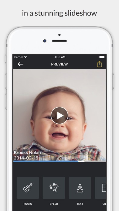 Facelapse stores your images privately and securely in camera roll, so you will never lose your cherished memories. Slideshows can be shared with family and friends through Instagram, Facebook, iMessages, email, whatever!