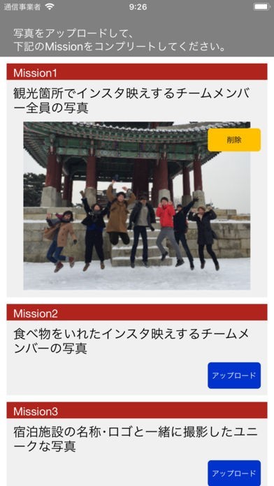 2.期限までにチームリーダーにより「選りすぐりの作品」を専用アプリにアップロードしていただきます。写真選びの際のチーム内コミュニケーションがさらなる団結力を生み出します。