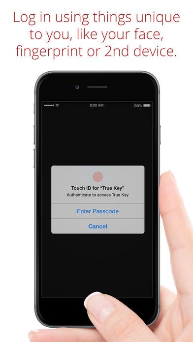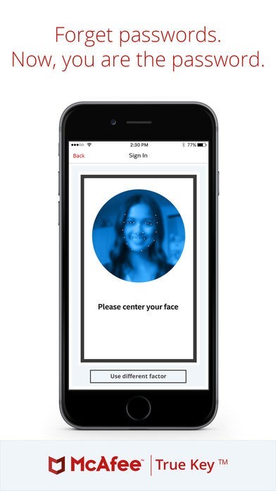 顔の数値データを使って顔認証でログインして、True Key アプリのロックを簡単に解除できます。