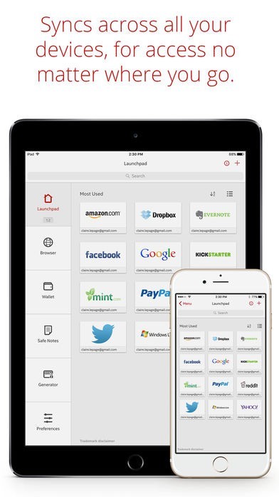 アプリがパスワードを保存して自動的に挿入するため、パスワードを覚えておく必要も、入力する必要もありません。