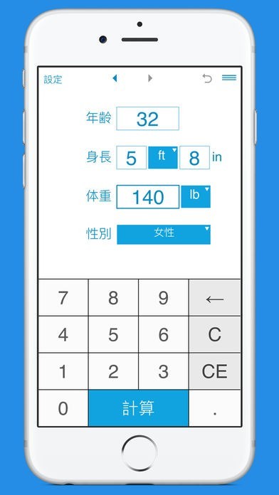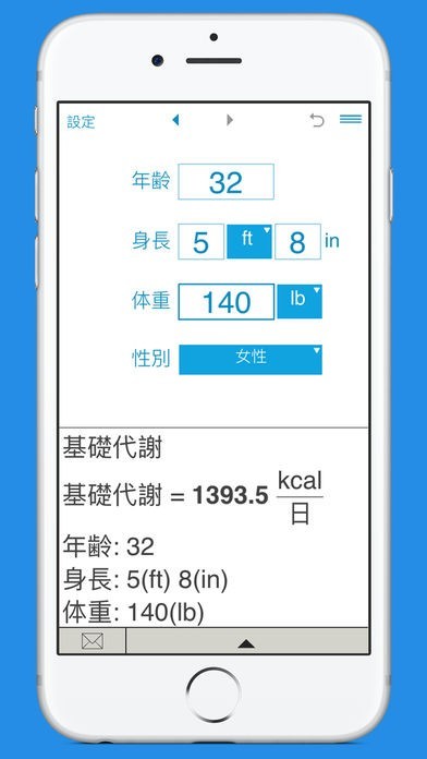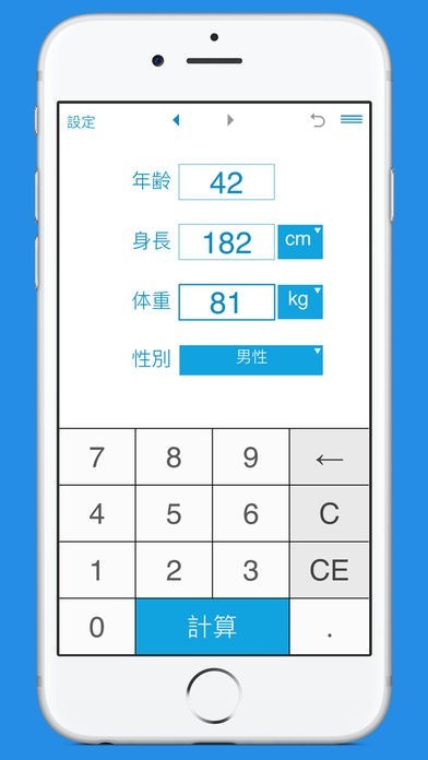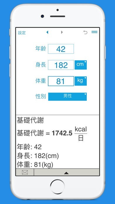 App Storeより引用BMR(基礎代謝率)計算機。BMR 計算を自動でいたします。