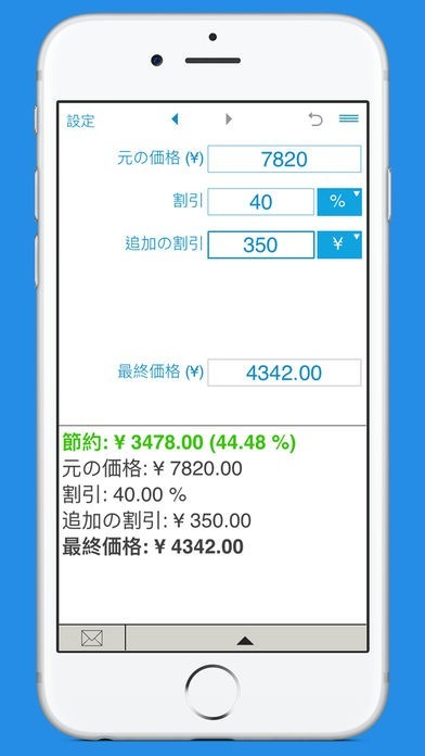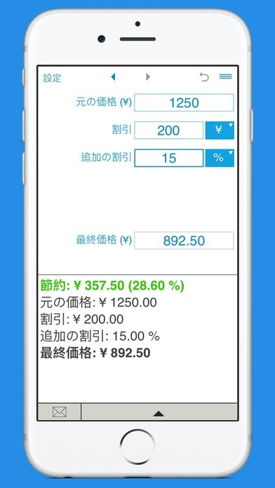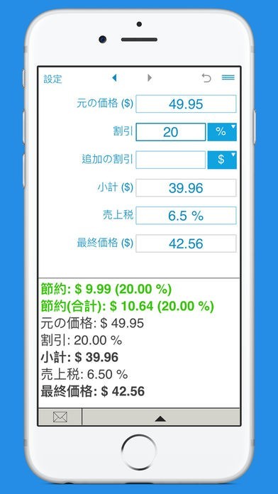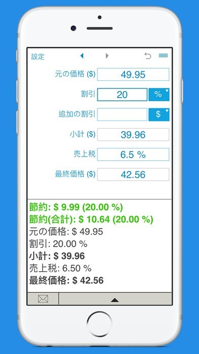 App Storeより引用割引価格とあなたの貯蓄を計算するための便利なアプリ。