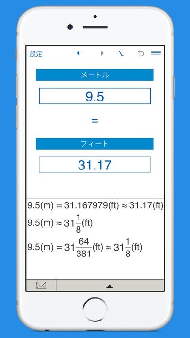 メートルからフィートへ、フィートからメートルへ変換するとき、それぞれ計算の途中式が表示されます。どのように変換が行われたのか、チェックすることができます。変換の計算について、より深く理解できるでしょう。