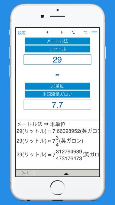 App Storeより引用米国液量ガロン・ リットルの換算.