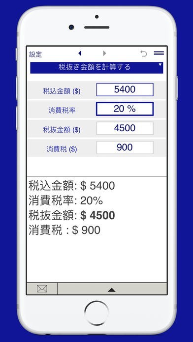 App Storeより引用この電卓を使用すると、付加価値税、付加価値税なしの価格、付加価値税の金額で価格を計算できます。
