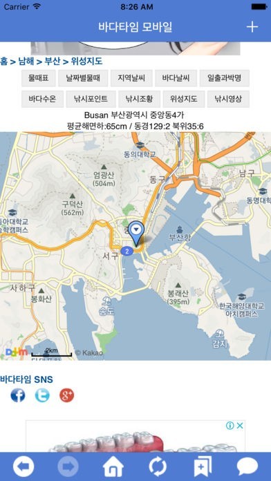 「바다타임 모바일 - 국내 최대 해양정보 서비스」スペック・仕様