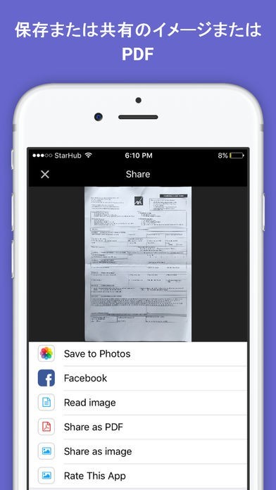 -画像やメール、iMessage、を介して PDF ファイルとして送信 Dropbox、Evernote、Google ドライブ、ボックスにアップロードまたは単に写真に保存あなたのスキャンを共有します。