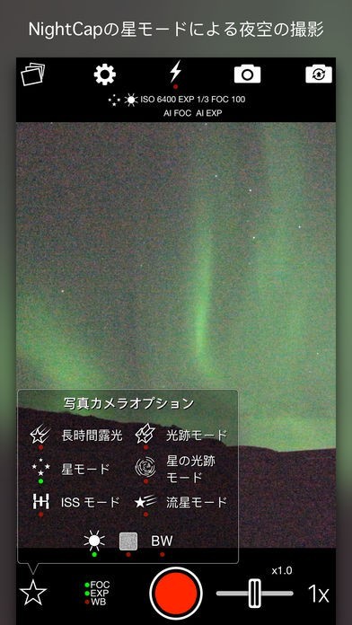 アストロノミーモードを使えばオーロラや国際宇宙ステーションも撮影可能