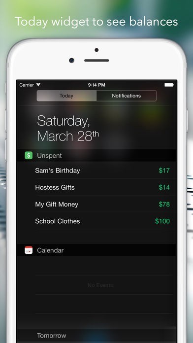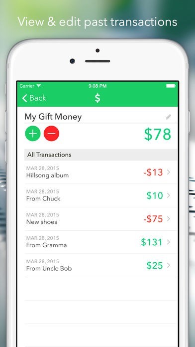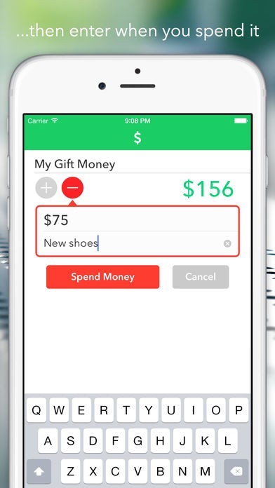 • Keep up with gift money you (or your kids) receive. Simply enter the gift amount in Unspent and deposit the cash or check in the bank.