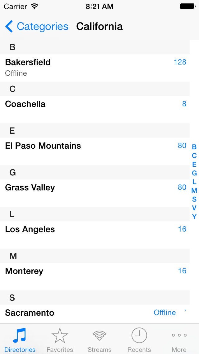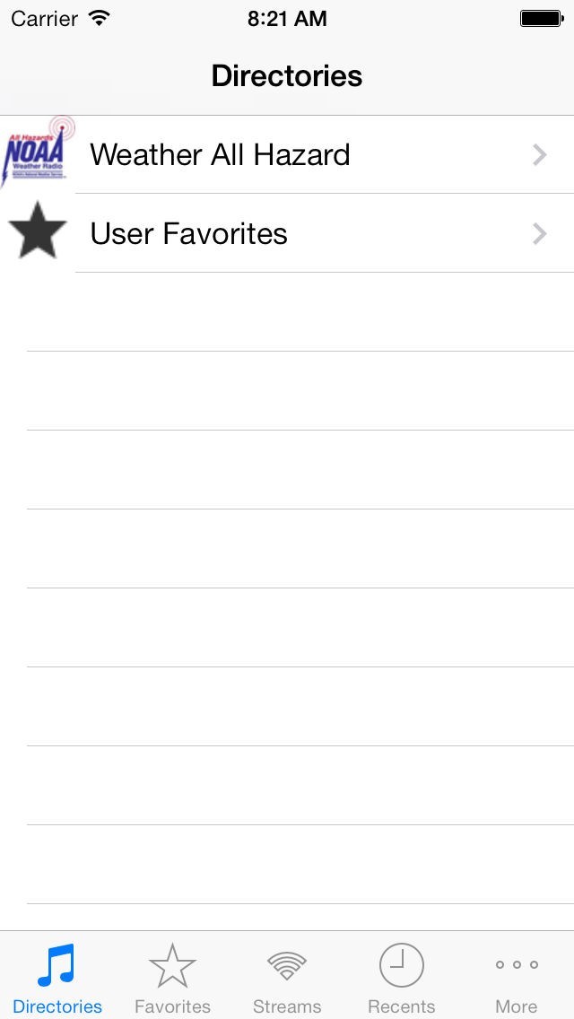 Weather Radio allows users to select from NWR audio streams by State-City, or add your favorite stream.