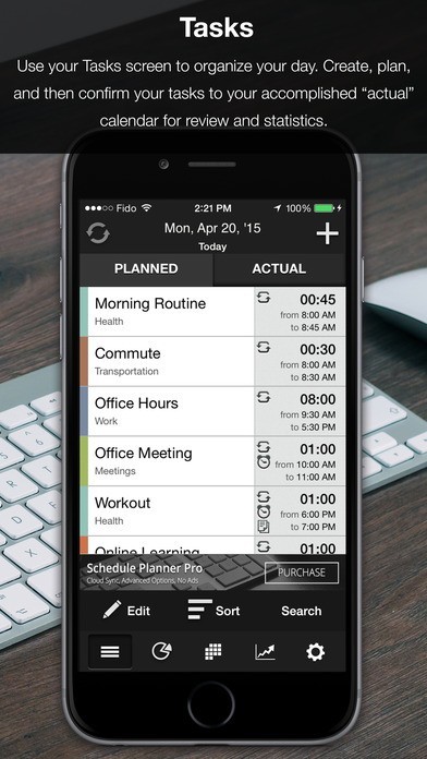 App Storeより引用Schedule Planner is a daily planning aide that helps users to organize their tasks by category and priority. The app features a practical and simple user interface that allows users to either create day plans from scratch or by editing pre-existing plans from external calendars (like Google Calendar) to save time.
