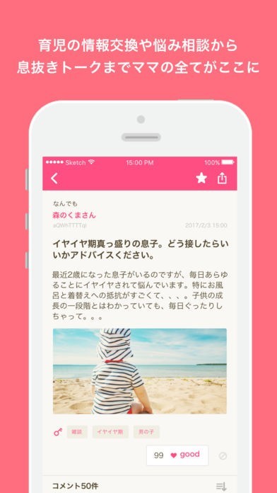 App Storeより引用月間ユーザー数800万人を超える日本最大級ママ向けコミュニティサイト「ママスタジアム」がアプリに!
