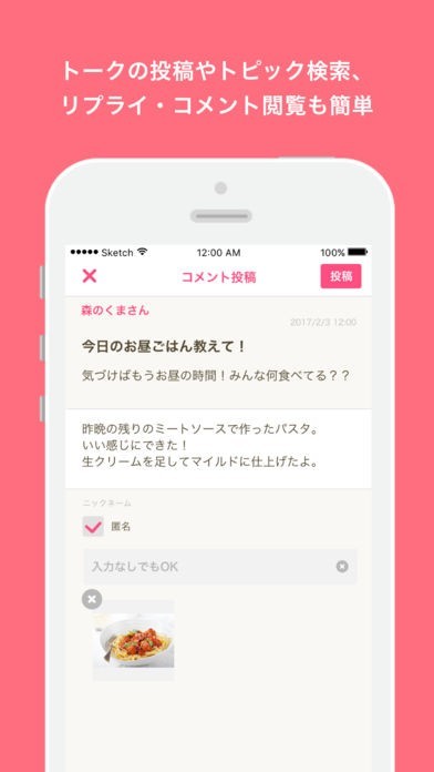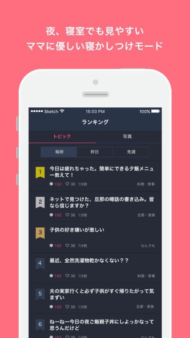 暇つぶしの息抜きトークから話題のニュースやテレビの感想、趣味やオシャレの相談までママの日常の全てがここで話せます。