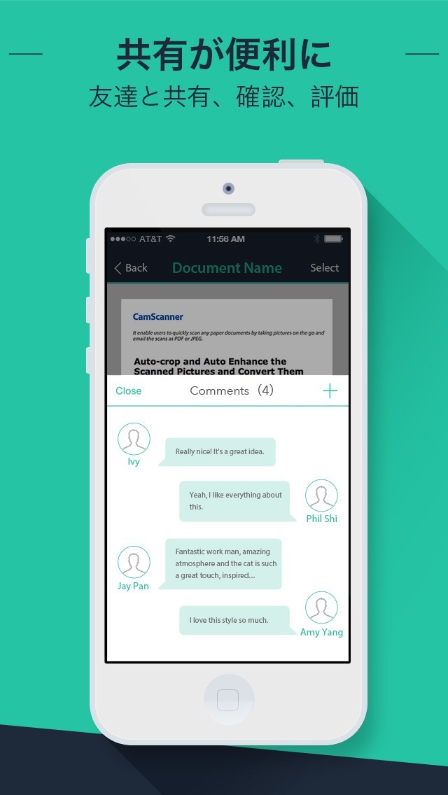 友人や同僚を招待し、スキャンしたドキュメントをグループ内で閲覧及び評価可能(登録ユーザーのみ)