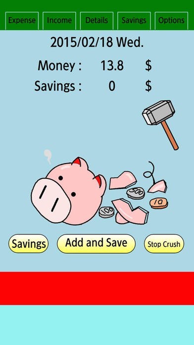 ブタの貯金箱に貯金も!支出収入の記録だけでなく、面白い機能が満載!!