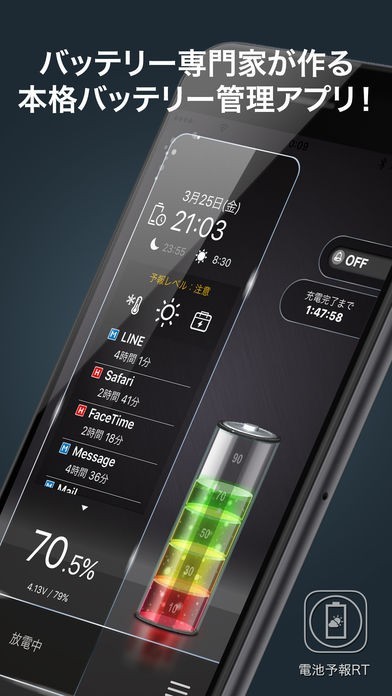 電池予報 RealTime 2は、それぞれのスマホの使用状態を分析して、電池の残量やバッテリーの状態を予測してくれる