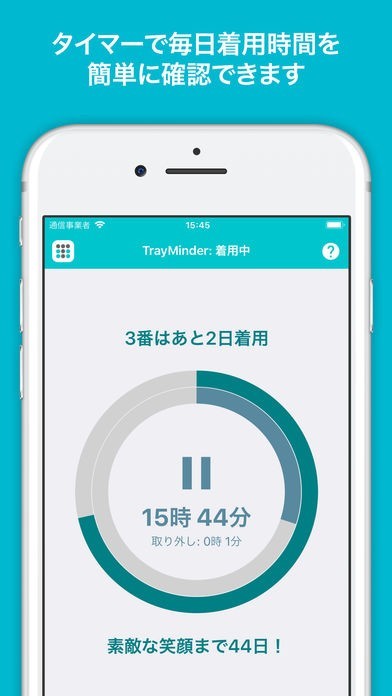 TrayMinderは、素敵な笑顔を手に入れるために一緒に頑張るパートナーのような存在です。このアプリがあれば治療がスムーズに進みます。毎日、マウスピースをどれくらい付けたのか確認することができます。マウスピースを長いあいだ付けていない場合はお知らせが届きます。また、次の新しいマウスピースに切り替えるタイミングを知らせてくれたり、進捗状況を記録するための歯のセルフィーを撮る時間なども知らせてくれます。