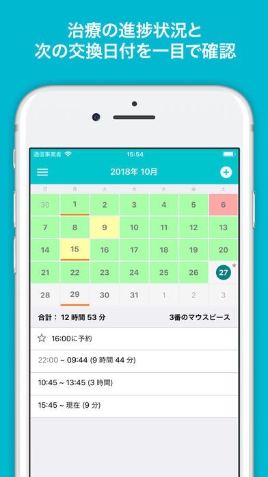 • マウスピース装着の結果がカラーで表示されるカレンダーで治療の進捗状況をひと目で確認