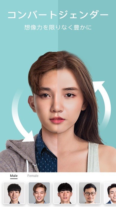 エイジング機能を使えば30年後の自分の姿、ジェンダースワップ機能を使えば異性になったときの自分の姿を表示できます。友人や家族と一緒におこなって盛り上がりましょう。