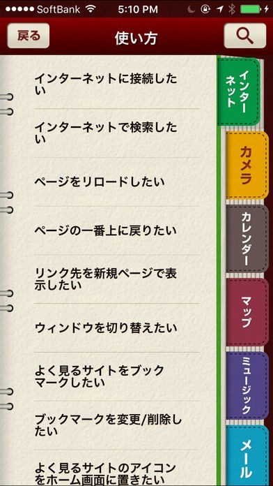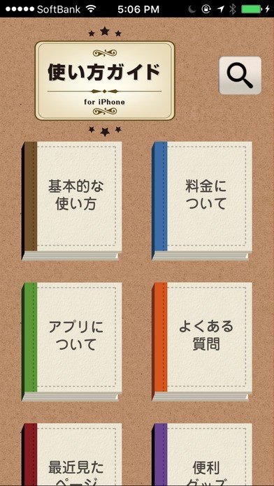 スマートフォン初心者はもちろん、もっと使いこなしたいという人にも最適なデジタルガイドです。 冊子の説明書を読むのは苦手だという人でも『使い方ガイドー初心者の説明書ー』なら、自分の知りたい事柄が簡単に探し出せます。 使い方はとってもシンプル。 まず、アプリを立ち上げたときに最初の画面に表示される項目「基本的な使い方」「料金について」「アプリについて」「よくある質問」などの中から、自分が知りたいカテゴリーをタップします。後は、選んだものから更に細分化されたインデックスが出てくるので、目的に合う項目を選択するだけ。直接キーワードを入力して検索することもできます。 操作方法についてだけでなく、携帯会社ごとの料金体系や、アプリ、iPhone関連のグッズなどの情報が盛り込まれているのが、ただの説明書とは違うところです。
