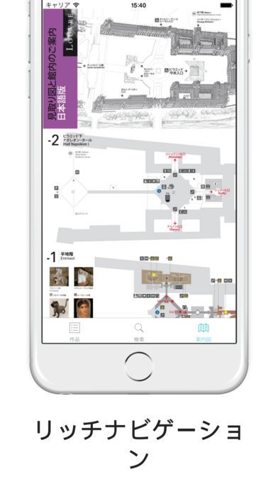 ルーヴル美術館には膨大な数の作品が所蔵されているため経路に沿って見ているとすぐに日が暮れてしまいます。そこで、見たい作品を即座に見つけられる検索機能が必要不可欠なのです。