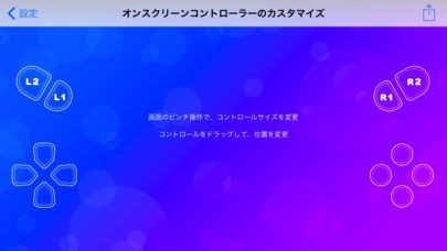 スクリーンコントローラーはサイズを変更できるので、手の大きさやスマホの大きさに合わせてカスタマイズできます。LRボタンもスクリーン上に表示されるので、ボタンがなくても画面上で完結します。