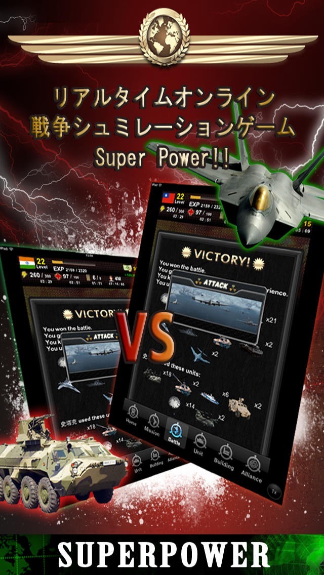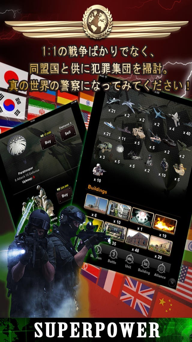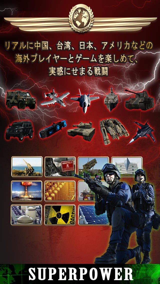 App Storeより引用リアルタイムのオンライン戦争シミュレーションゲームスーパーパワー!!