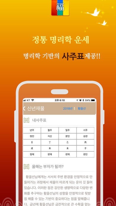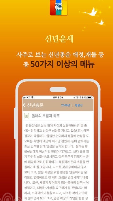 메인페이지> 년도 정보가 표시되며 언제든지 해당 년도를 변경해서 신년 운세를 볼수 있어요..