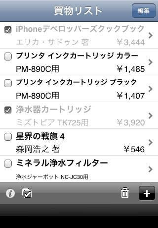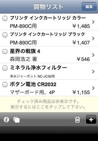 チェック機能を搭載。購入済み商品は1タップでチェック完了!