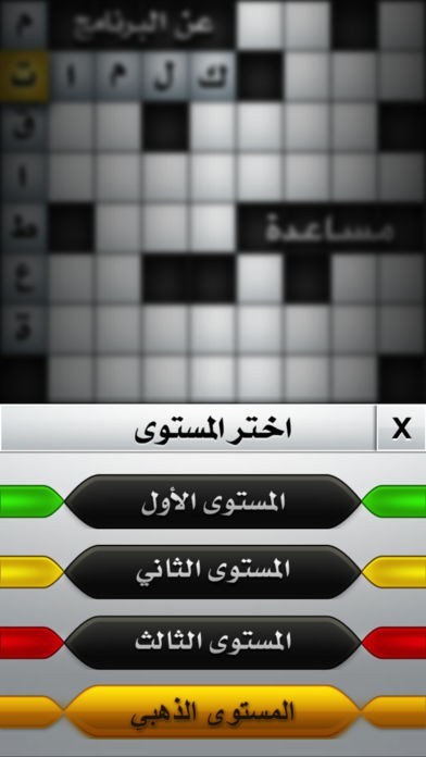 * فرصة الحصول على مساعدة لحل كلمة او اكثر في جميع المراحل