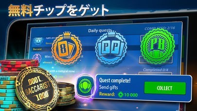 毎日ゲームをプレイすると無料チップが支給されます。他にもFacebookで知り合いを招待したり、デイリークエストをクリアしたりすれば無料ボーナスがたくさん貰えるので、積極的に狙っていきましょう。