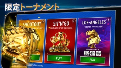 「Pokerist Pro」ではテキサスホールデムやブラックジャックといったカジノゲームをお楽しみいただけます。「Sit'n'Go」や「Shootout」といった限定トーナメントが定期的に開催されているので、優勝目指して積極的に参加していきましょう。